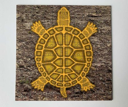 Ce puzzle en bois de 169 pièces représente la Tortue. Dans le Feng Shui, c’est le Nord symbolique, le dos.